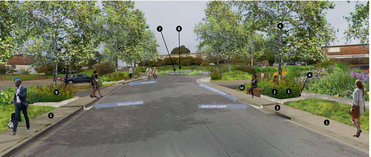 Greening Projects is dedicated to advancing environmental justice and sustainable infrastructure in the neighborhoods that need them most. Our work in Bayview Hunters Point focuses on the “neighborhood enclave” model: transforming residential pockets into resilient, lush spaces that protect the community from the elements.