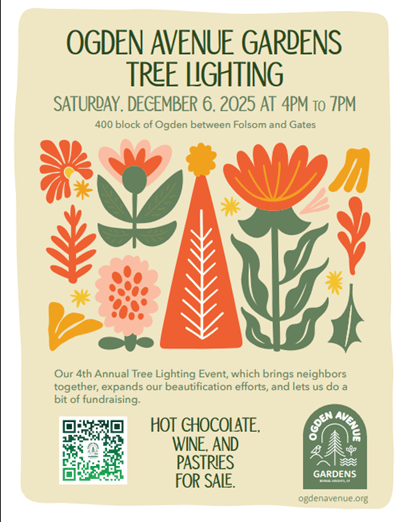 Join us for our beloved 4th Annual Tree Lighting Event, a cherished tradition that brings our community together in celebration of the season! This special evening combines the warmth of neighborhood connection with our ongoing commitment to enhancing the beauty of Ogden Avenue Gardens.